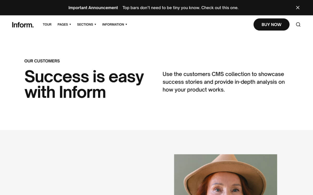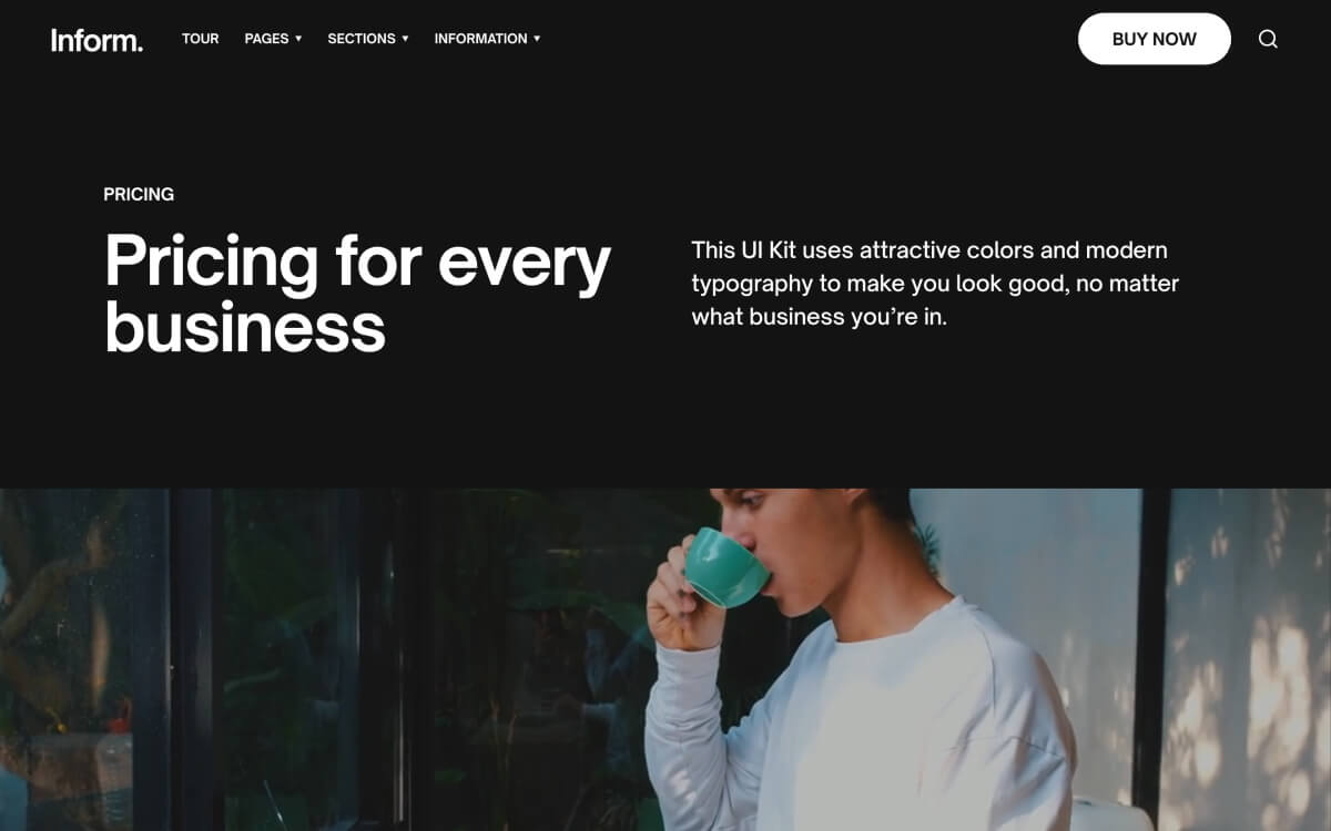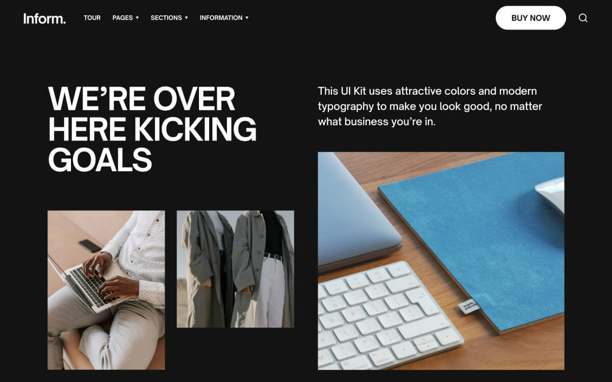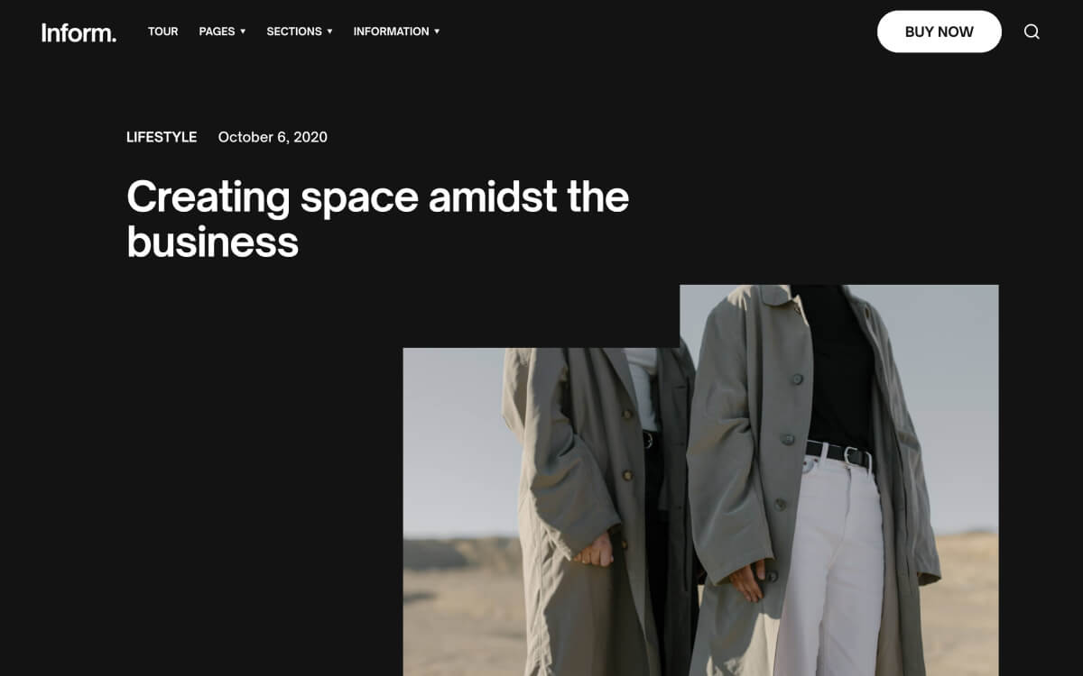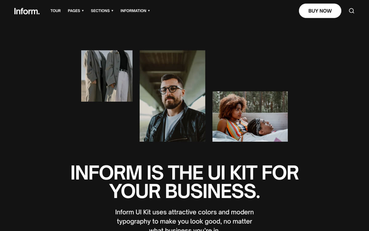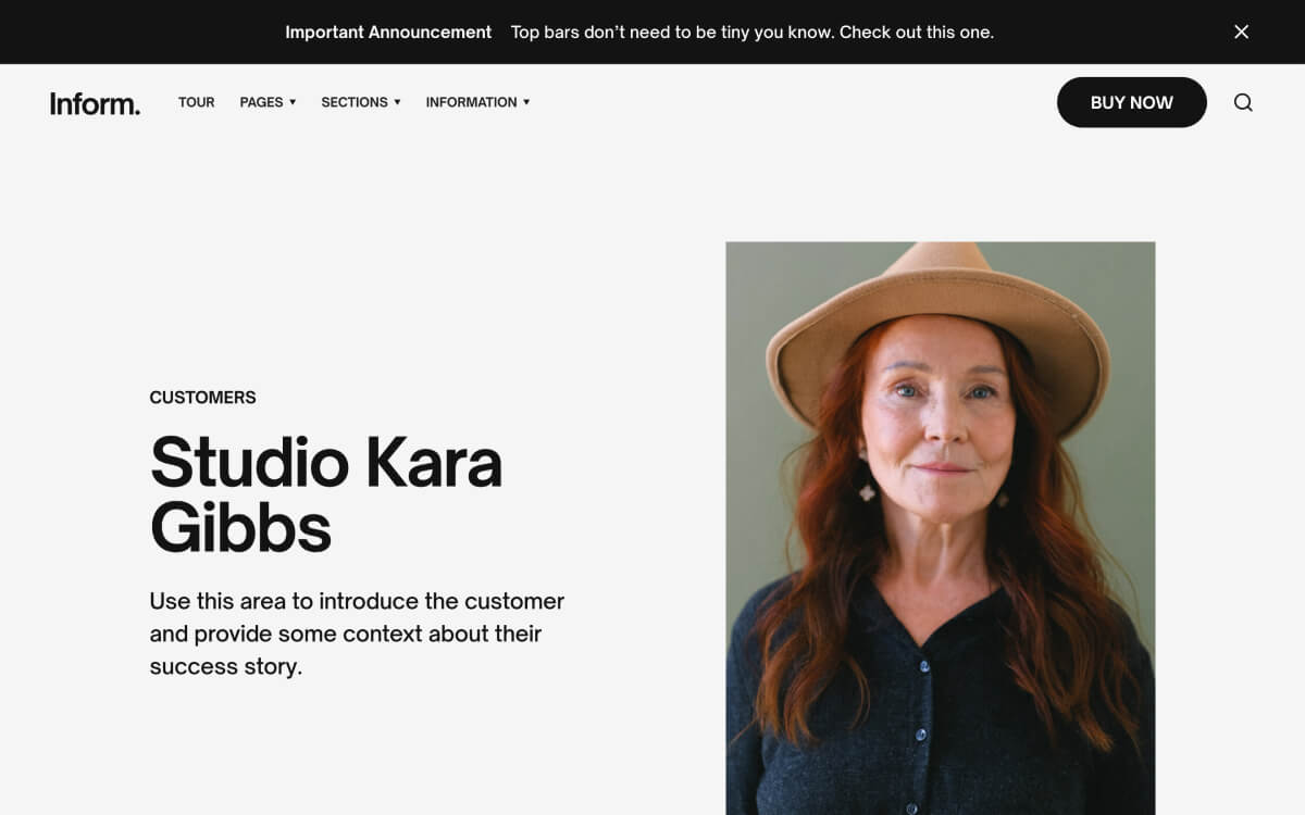Express yourself through Inform’s bold typeface and no-fuss aesthetic. Everything you need is on-hand with 70 page sections across 26 layouts.