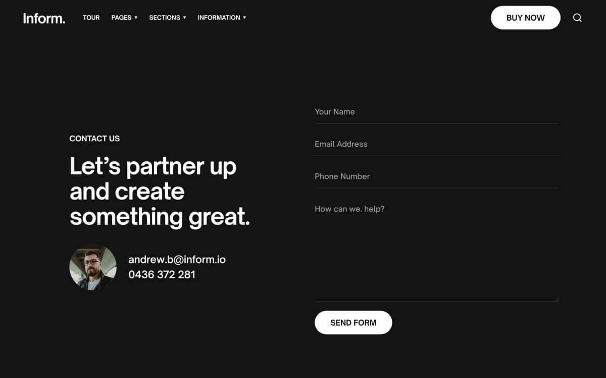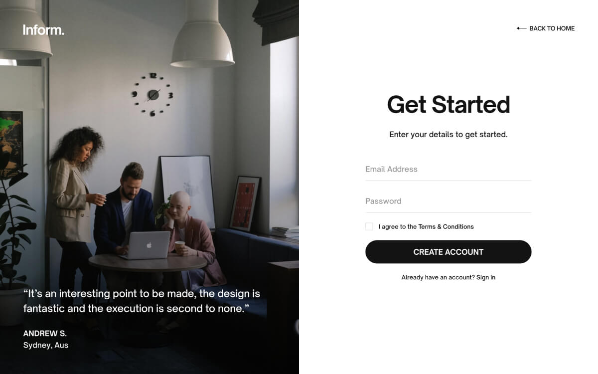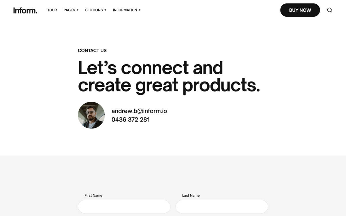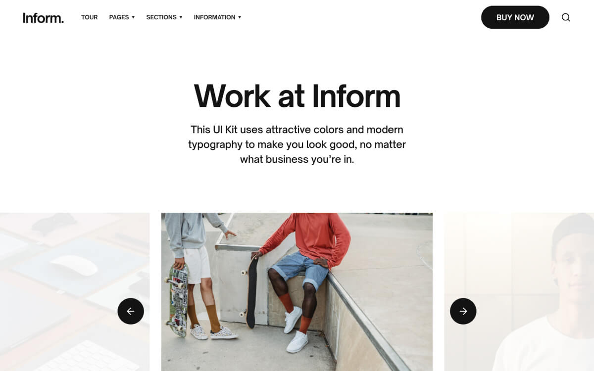 Create beautiful pages with ease using Inform’s expertly styled collection of pages, sections and UI components.